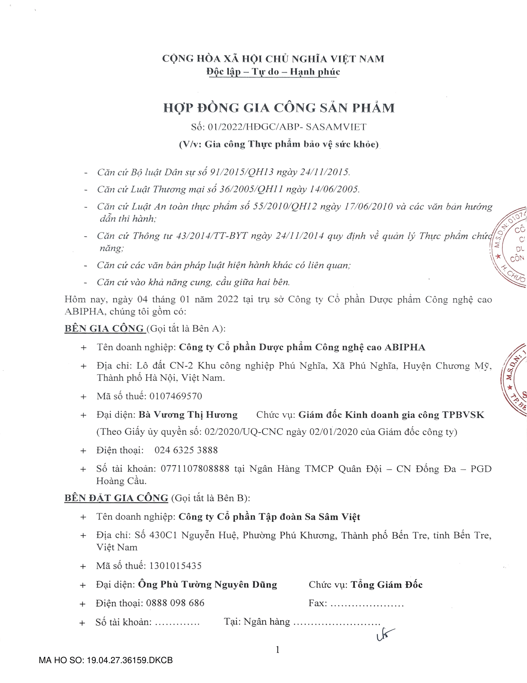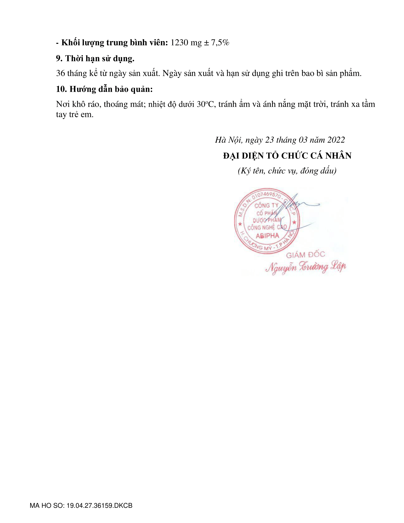 | Nhà máy sản xuất | Công ty Cổ Phần Công Nghệ Cao Abipha |