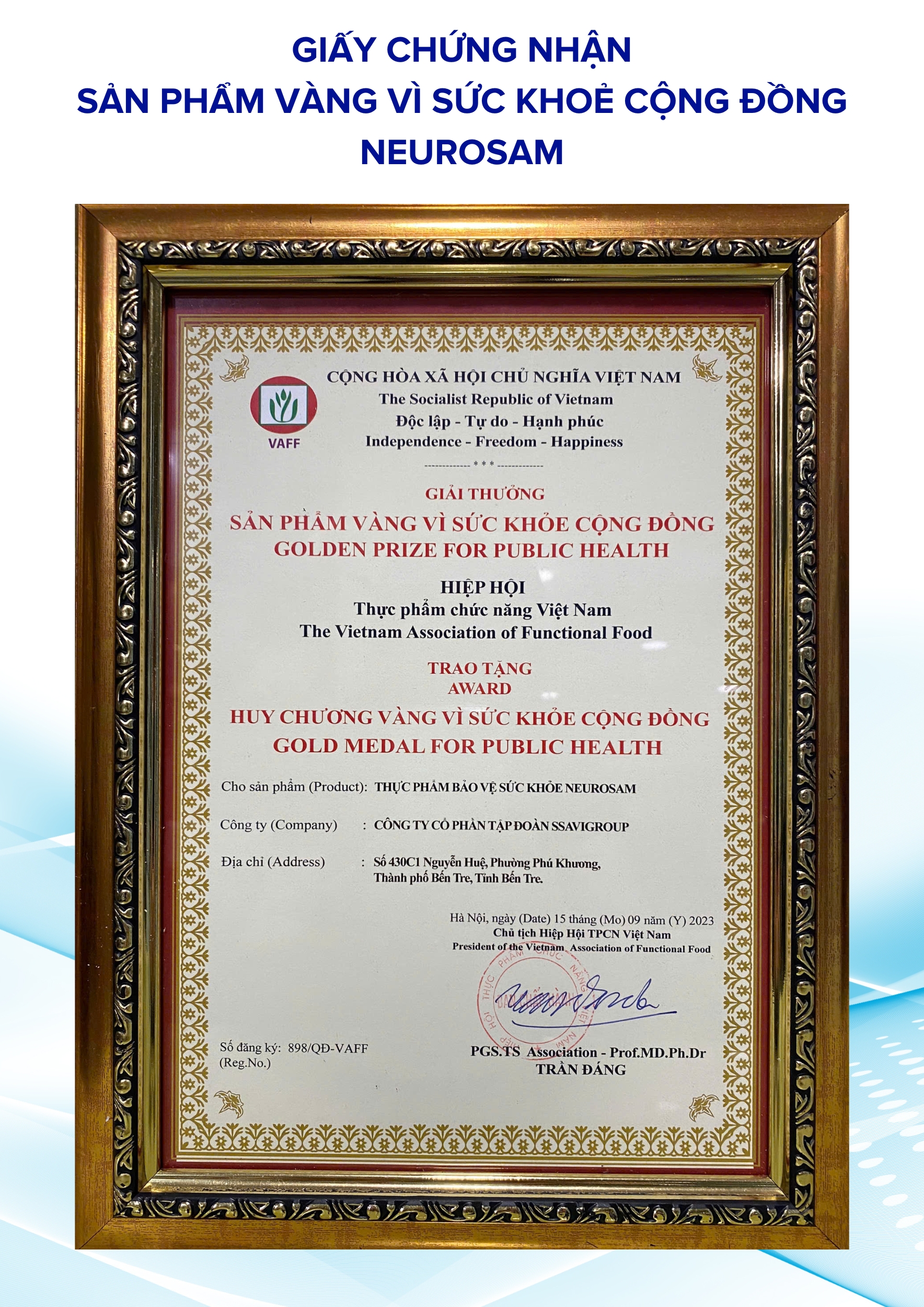 NEUROSAM - SÂM HOẠT HUYẾT DƯỠNG NÃO, LÀ SẢN PHẨM NGHIÊN CỨU KHOA HỌC, ĐẠT CHỨNG NHẬN SẢN PHẨM VÀNG VIỆT NAM.