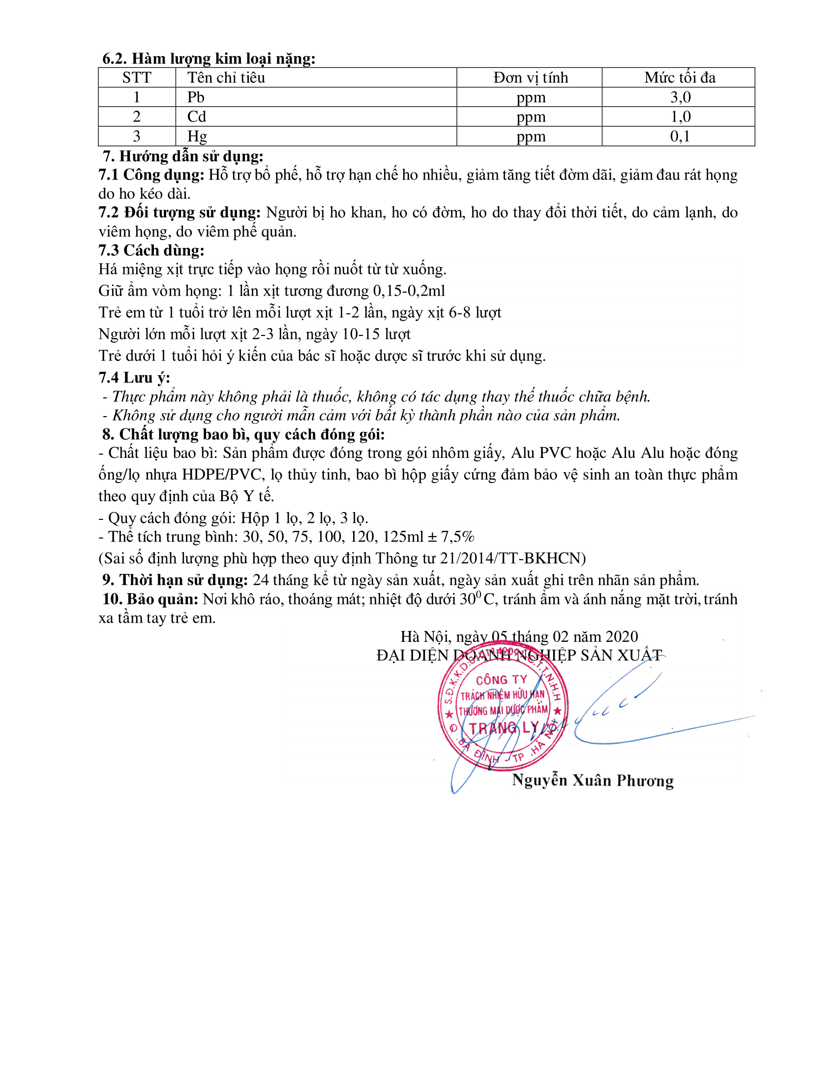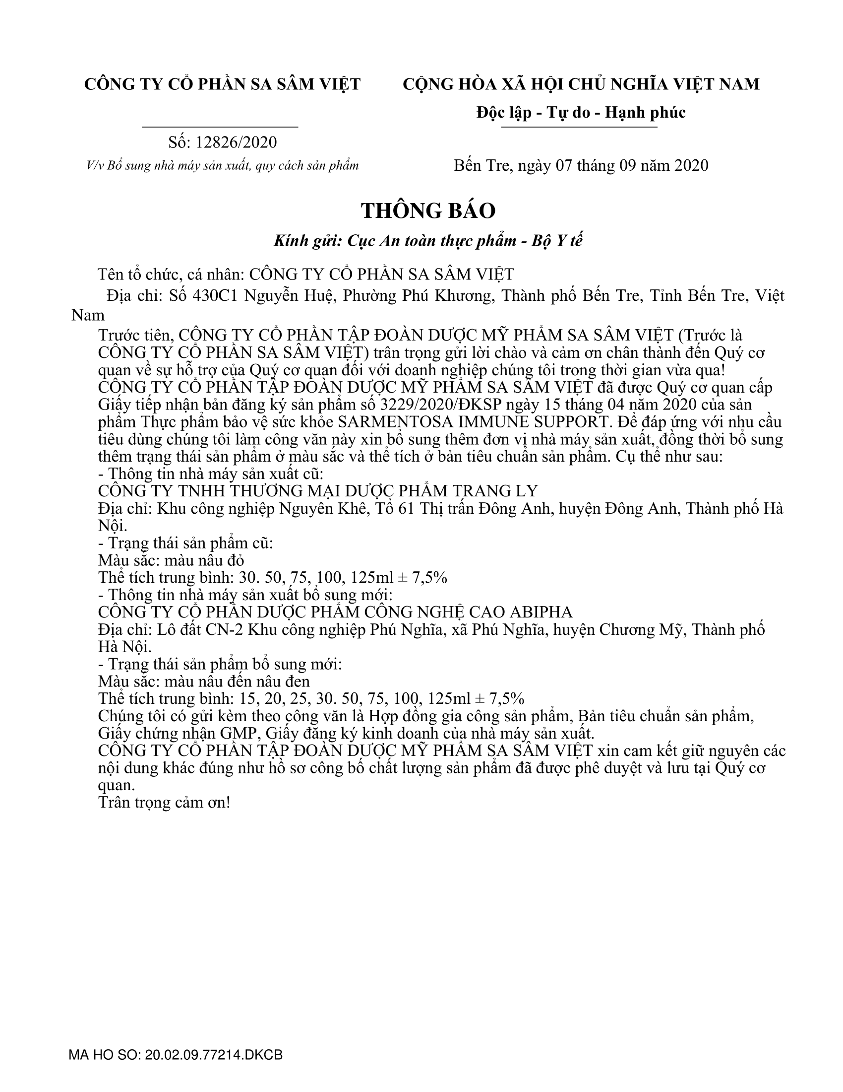 | Thông tin công bố sản phẩm | 3229/2020/ĐKSP |