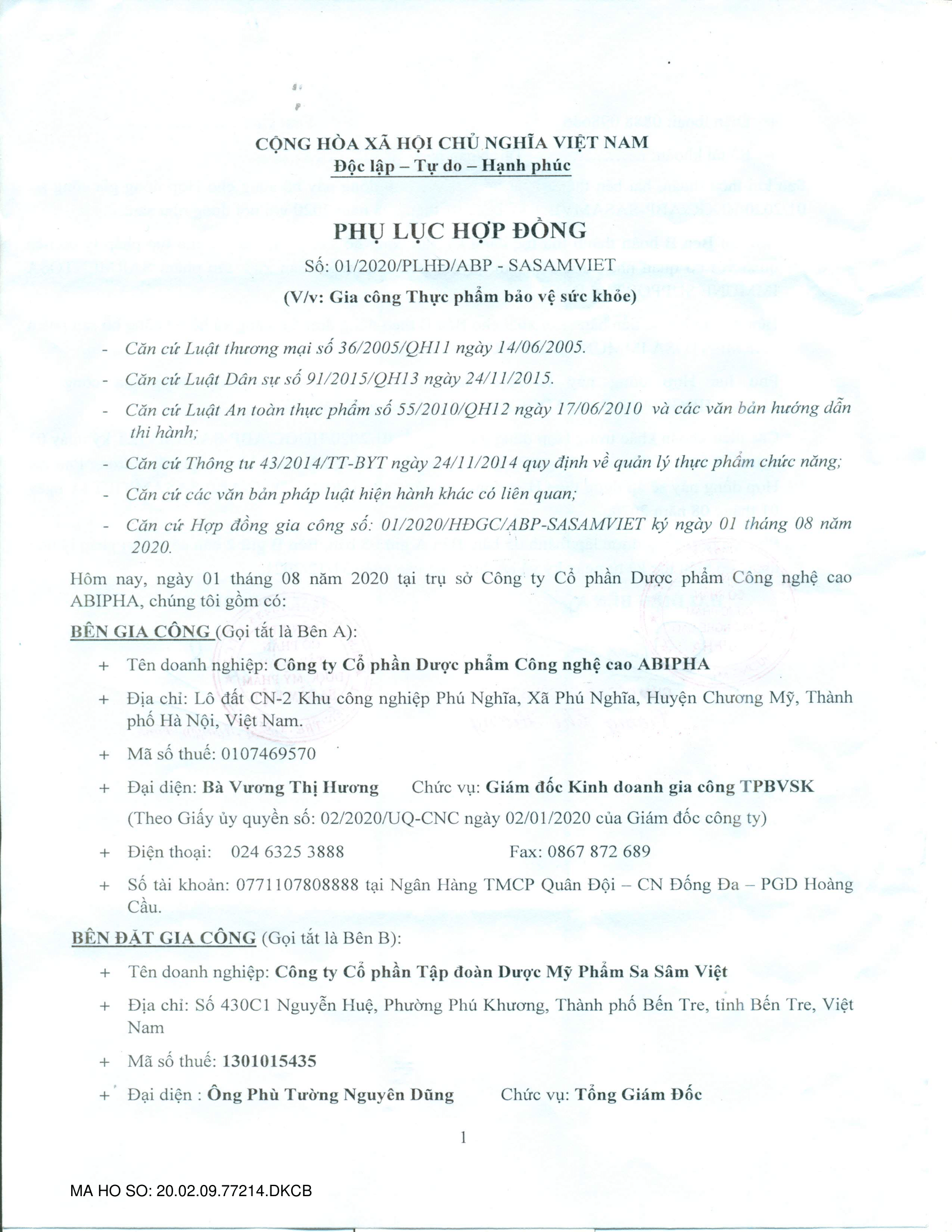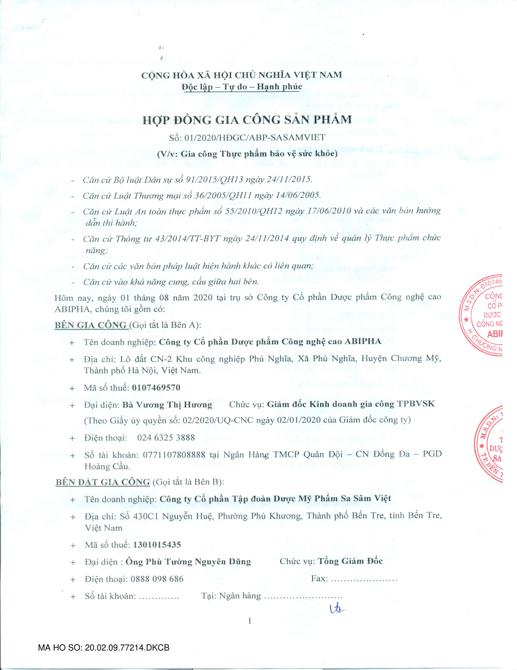 | Nhà máy sản xuất | Công ty cổ phần Công Nghệ Cao Abipha |