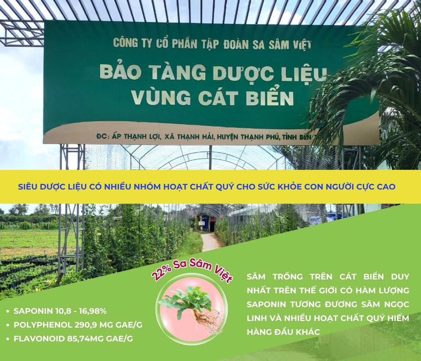 Sa Sâm Việt – loại sâm trồng trên cát biển duy nhất tại Việt Nam – chứa ba nhóm hoạt chất và khoáng chất vi lượng vô cùng quý hiếm, nghiên cứu được đăng tải trên các tạp chí IOP Science (2019) & Nutrients (2020).