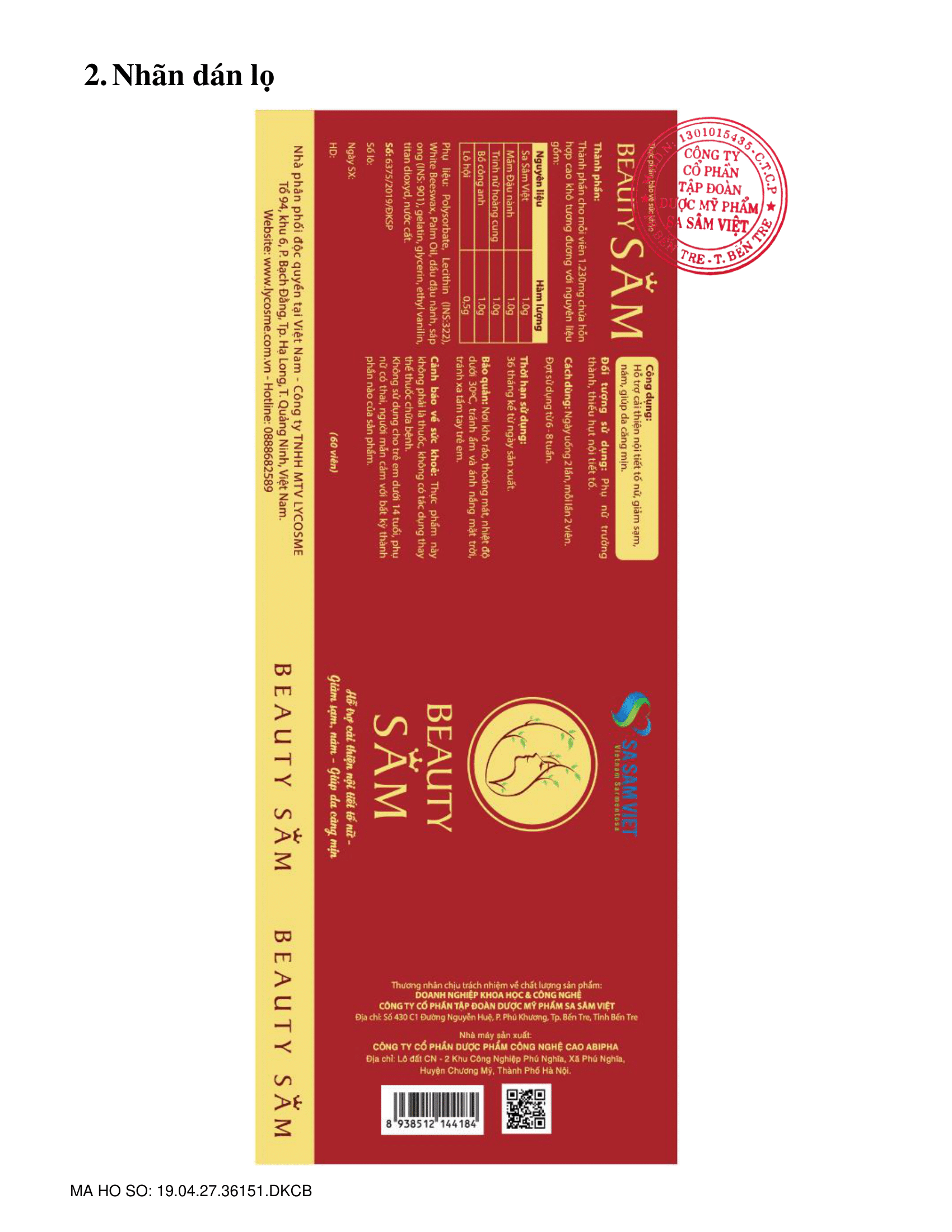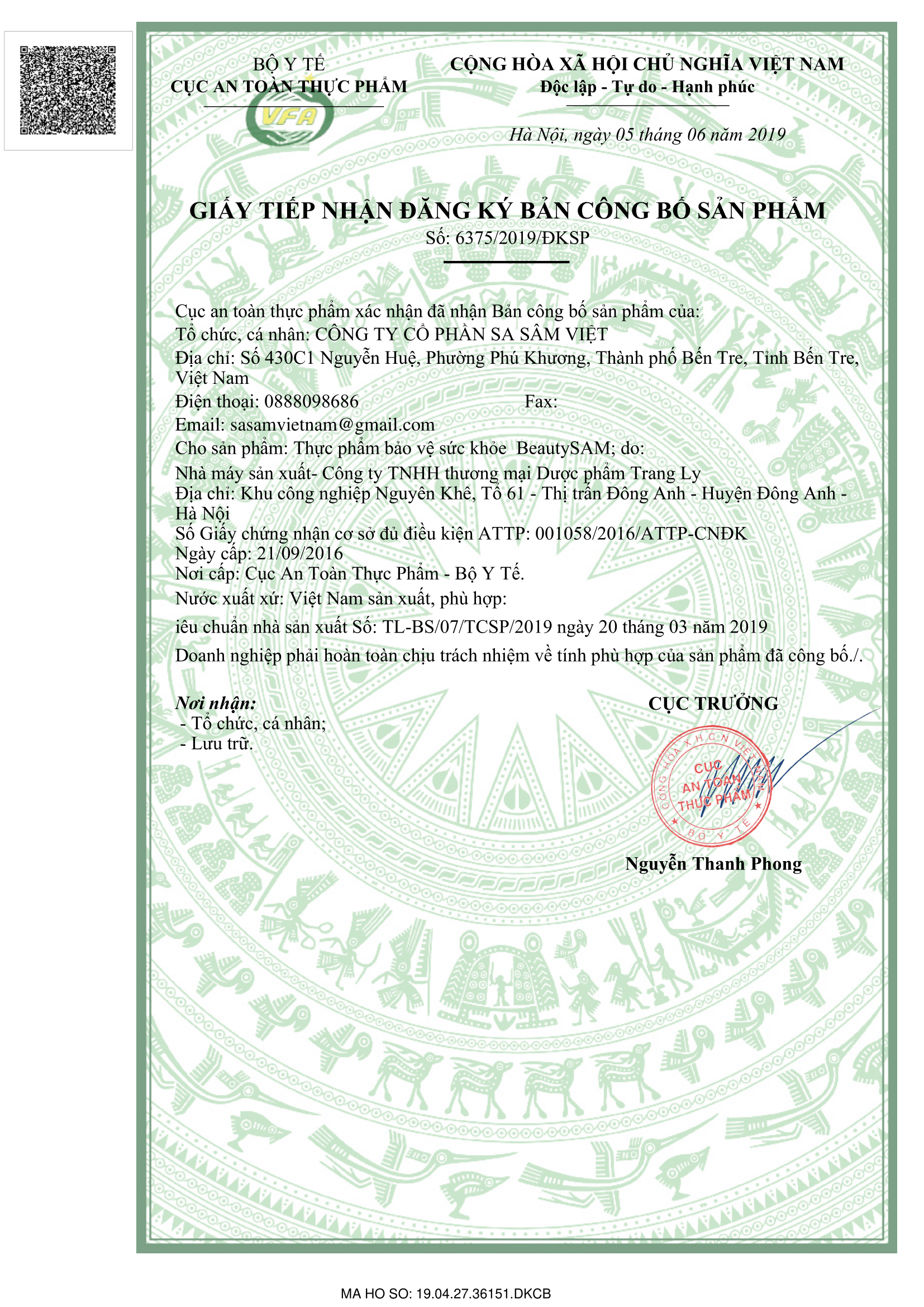 | Tên sản phẩm | BeautySam - Sâm Đẹp Da |