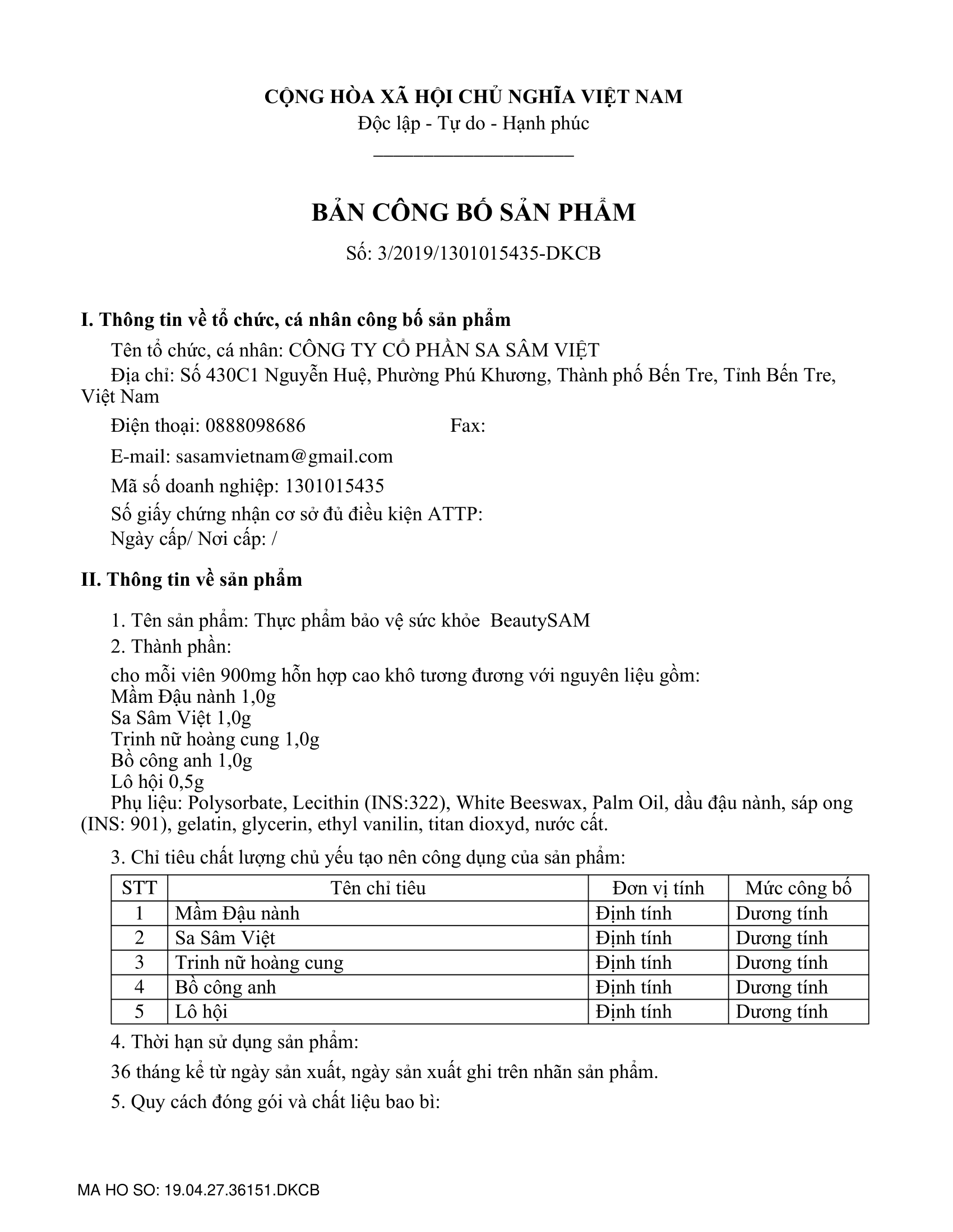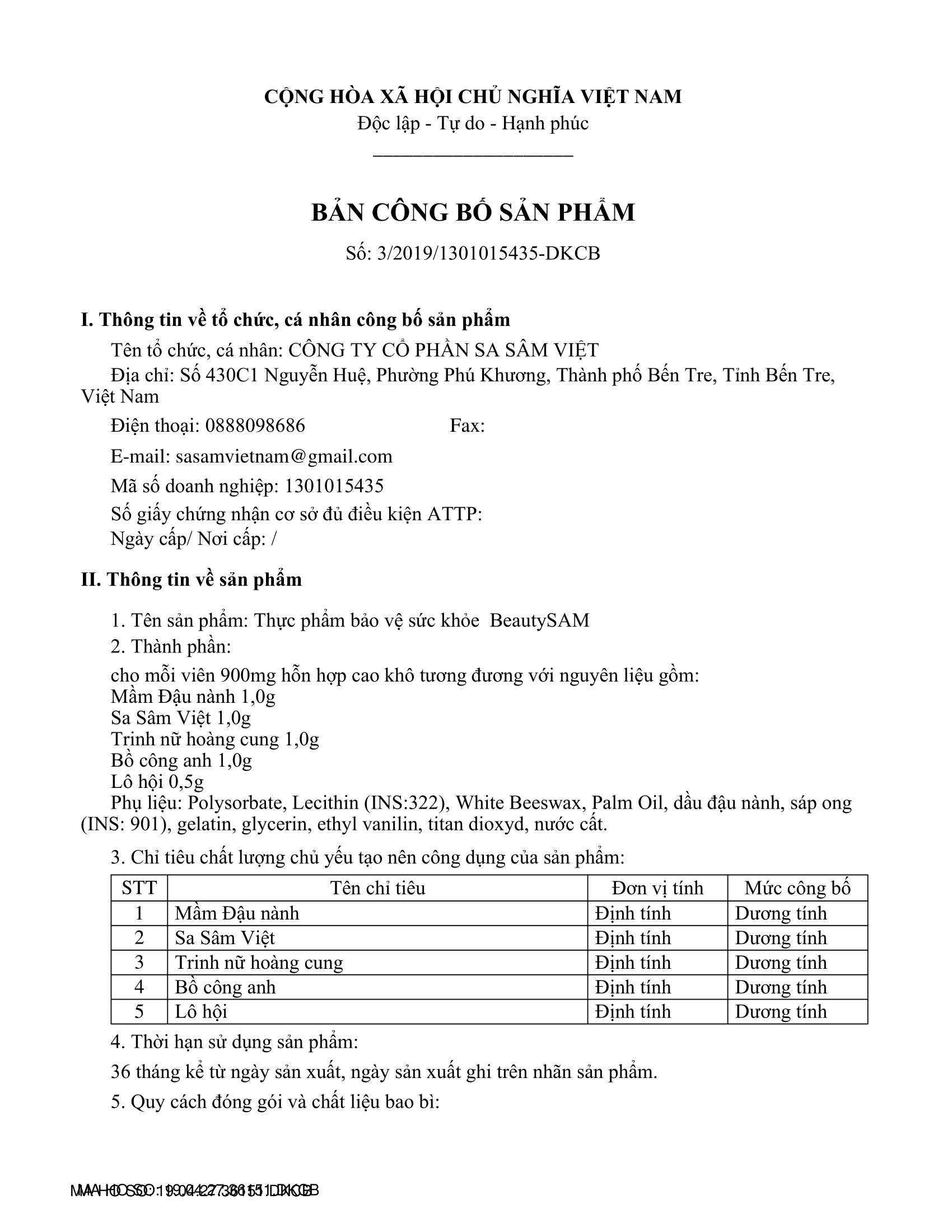 I. GIỚI THIỆU BEAUTYSAM "SẢN PHẨM NGHIÊN CỨU KHOA HỌC - ĐẠT CHỨNG NHẬN SẢN PHẨM VÀNG VIỆT NAM"