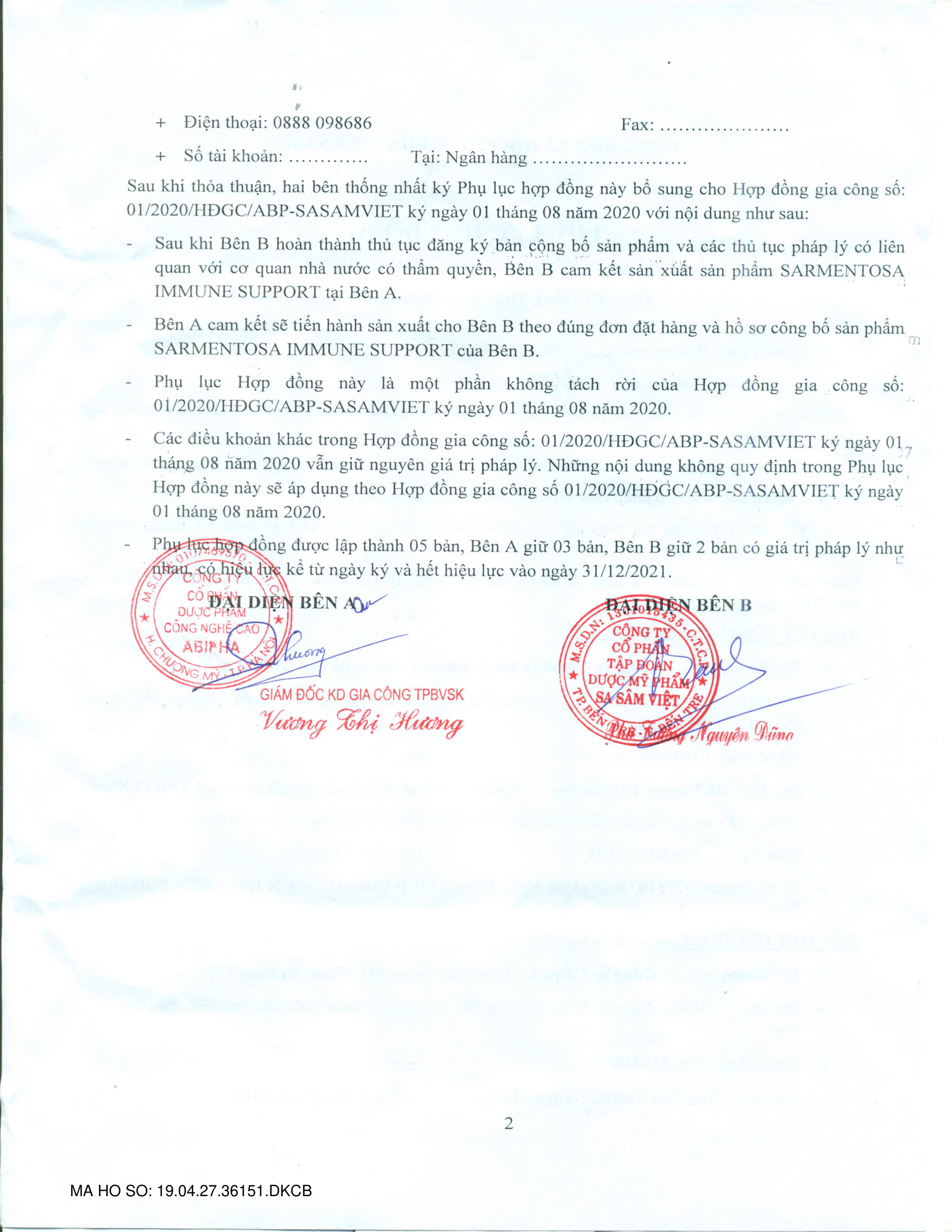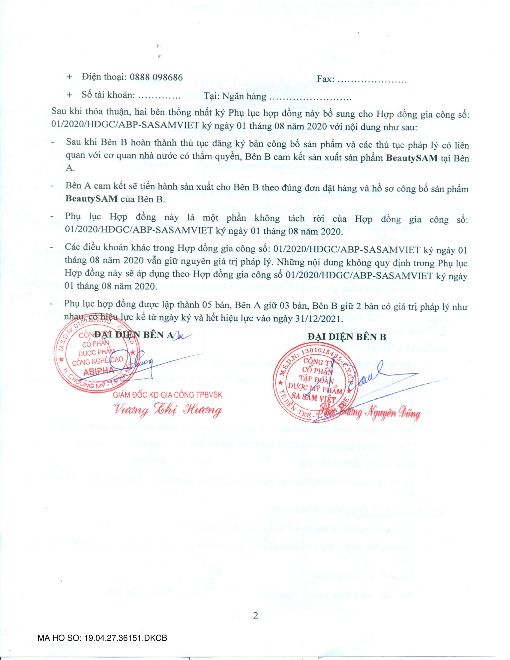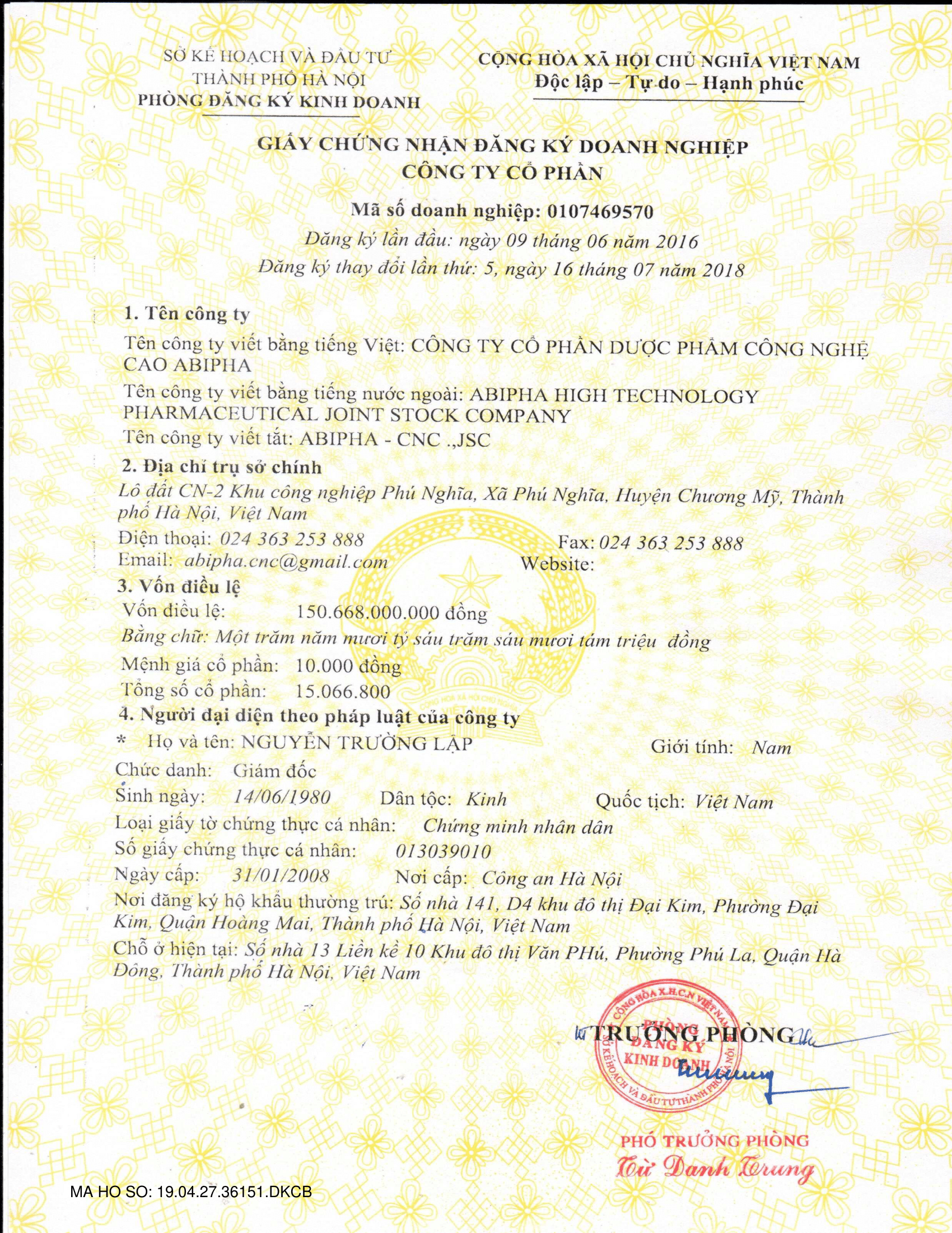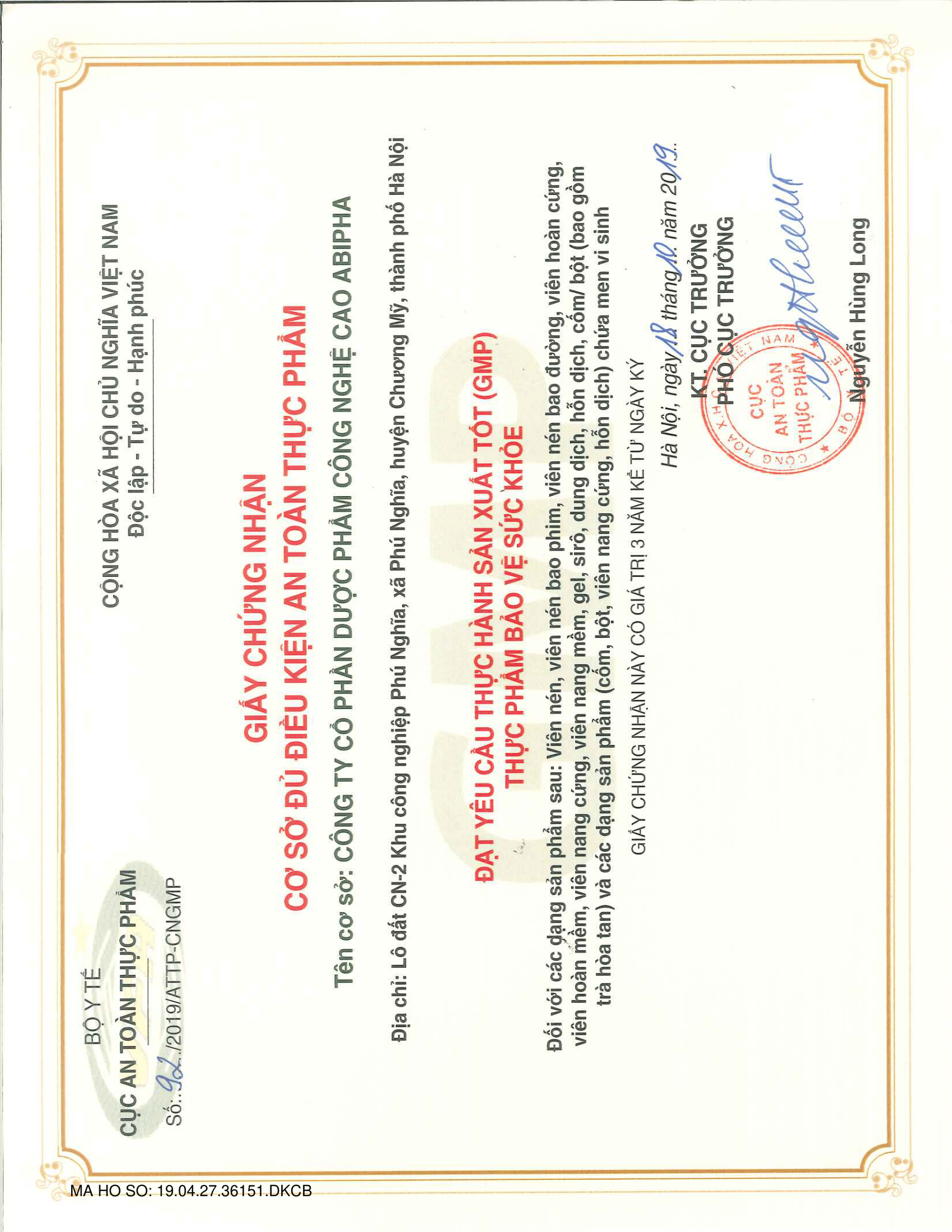 | Nhà máy sản xuất | Công ty cổ phần Công Nghệ Cao Abipha |