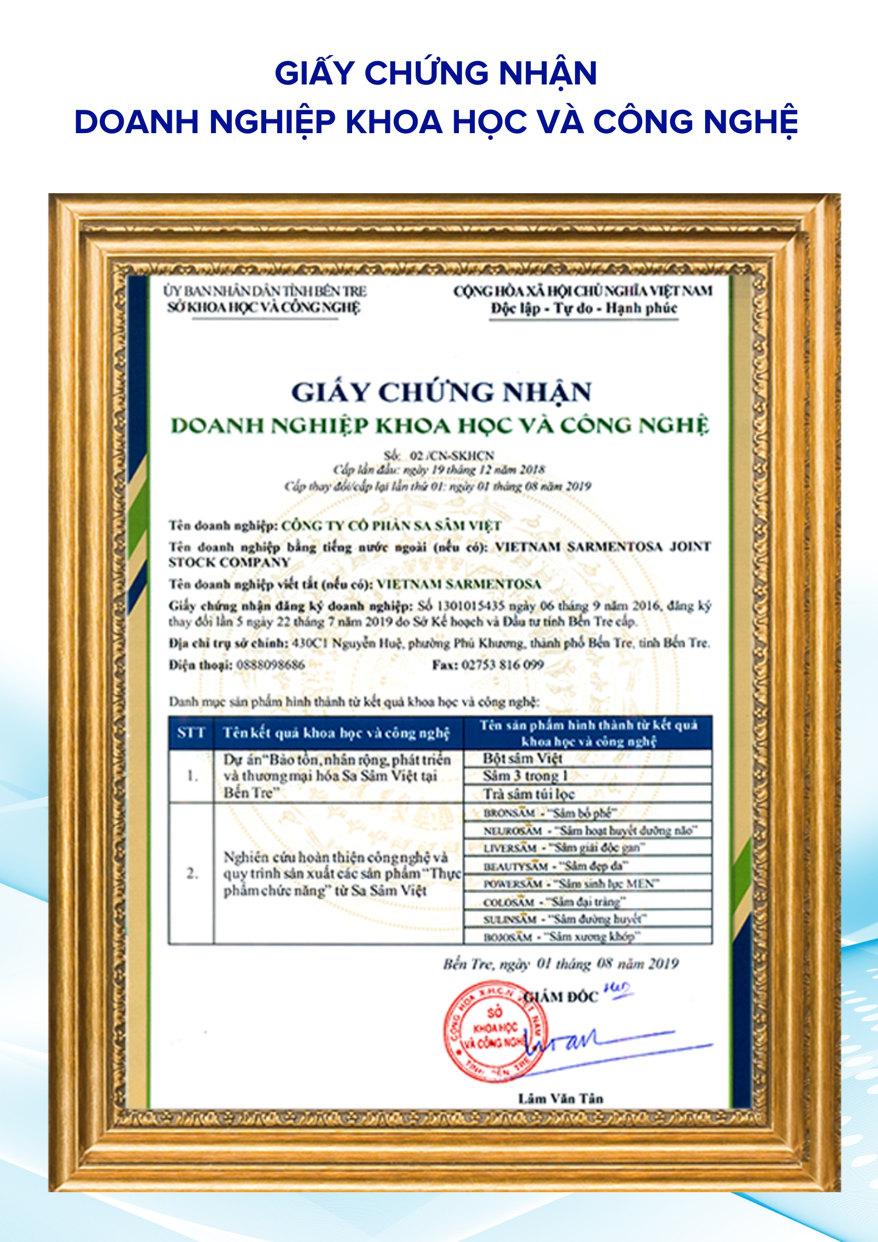 5. CHỨNG NHẬN DOANH NGHIỆP KHOA HỌC CÔNG NGHỆ VÀ SẢN PHẨM KHOA HỌC CÔNG NGHỆ